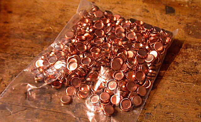 This is how the slugs exit the die. Normally of course the catch vessel is in place to prevent their spilling all over the place.