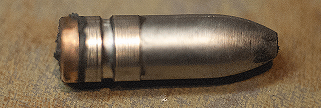 We will take a small break here to discuss an issue common to cast bullets but one which can be avoided. Leading! Leading is a condition in which the lead from the bullet plates itself to the edges of the juncture of the lands and grooves, following the rifling. This condition arises from any combination of the following factors, a rough bore, a too soft lead alloy for the velocity of the round, inadequate or inappropriate lube, or attempting to drive a lead bullet at jacketed velocities. We will discuss these issues in depth at another time, but for the purposes of this discussion, we are presuming that the alloy we are using, the lube that we are applying, and the velocities at which we will be driving these bullets will require a gas check. The gas check serves three purposes. It protects the base of the bullet from the heat of the burning powder, it helps seal the bore from gas bypass, and it helps remove fouling (if any) from the previous round. All three of these are hugely helpful in reducing the potential for any leading to occur, and permit the driving of the projectile at higher velocities.